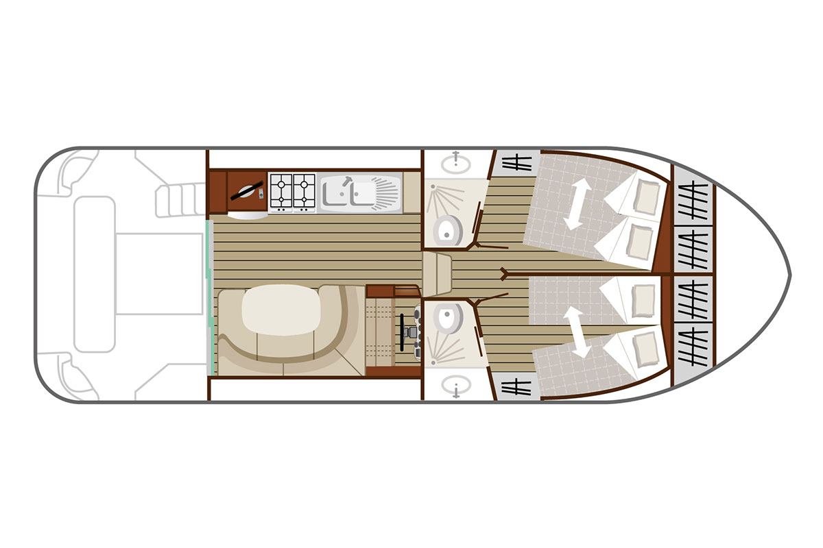 New 2023: To improve onboard comfort even more Nicols has added extra equipment to the Quattro B, with this new model becoming the Quattro B+. The Quattro B+ offers the benefit of a sun awning on the upper deck and air conditioning using shore power.