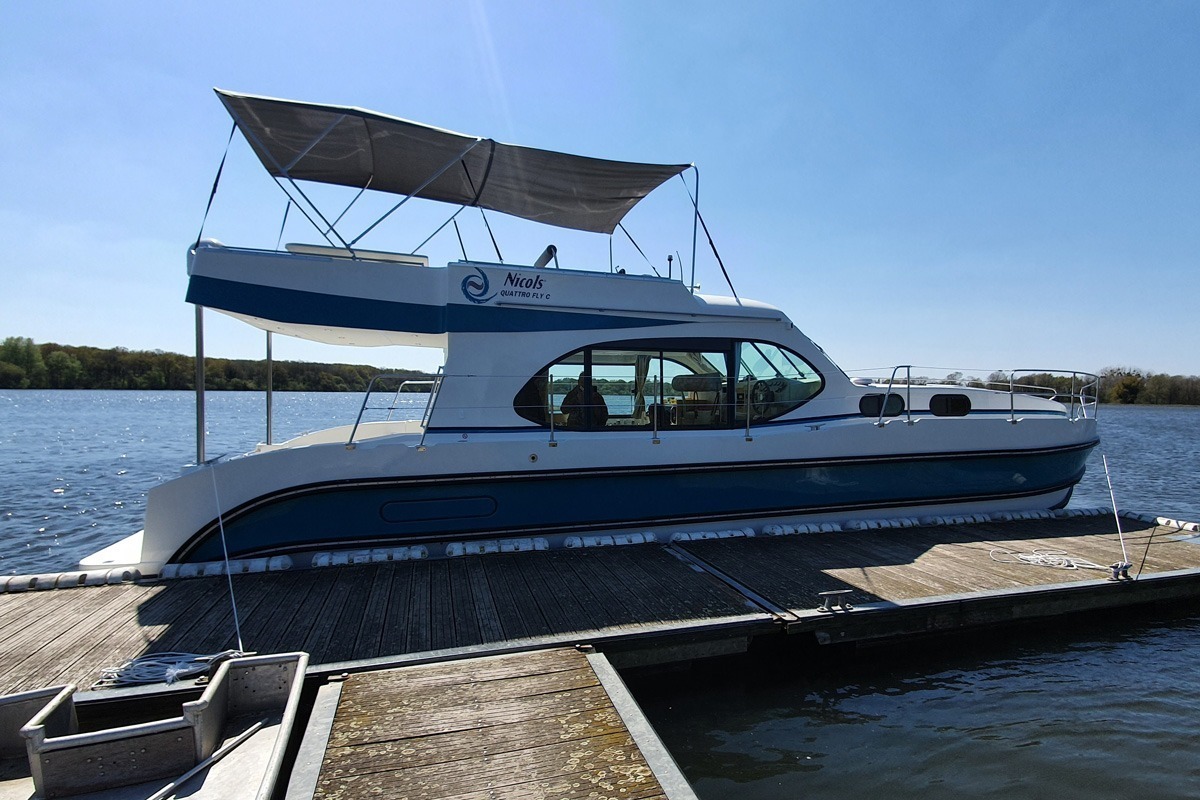 Le Quattro Fly C de la gamme Fly, avec ses 13 mètres de long, est la version courte de la gamme Fly issue du chantier Nicols. Ce modèle a été lancé en 2021 pour compléter la gamme Fly, et offrir un confort maximum pour accueillir 4 personnes.