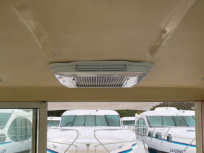 Voici l’exemple d’un cruiser Nicol’s Yacht de la gamme Estivale Sixto (13.50m) équipé d’un taud rigide au-dessus de la terrasse arrière. Son propriétaire l’a équipé de panneaux solaires, afin de tendre vers une autonomie électrique sans avoir besoin de se raccorder à quai. Les travaux d’installation ont été réalisés par la Sté SPN ENERGY (44350 SAINT MOLF)