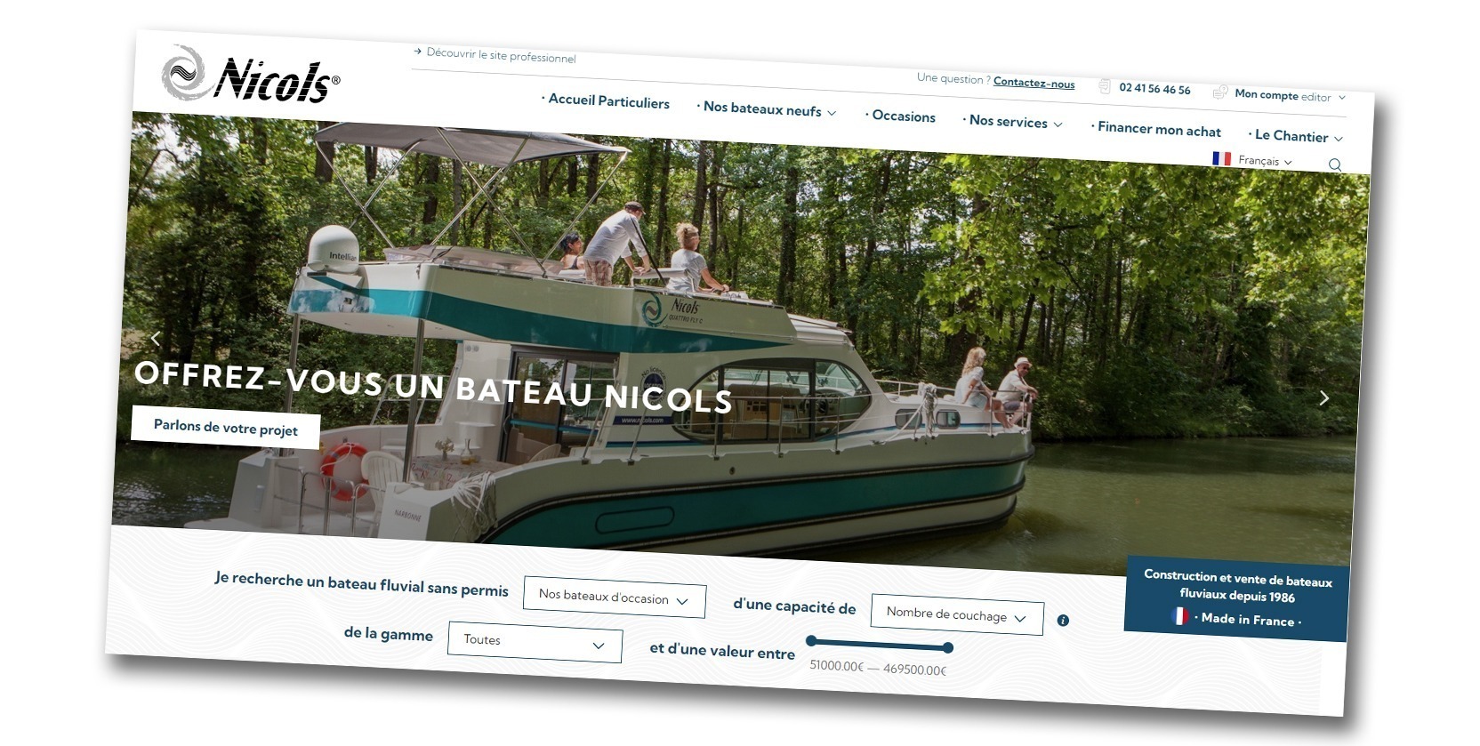 www.nicolsyacht.com : un nouveau site web pour les particuliers en recherche d’un bateau ou déjà propriétaire d’une vedette Nicol’s Yacht, ou encore pour les professionnels qui gèrent une base nautique et souhaitent rejoindre notre réseau de location NICOLS.